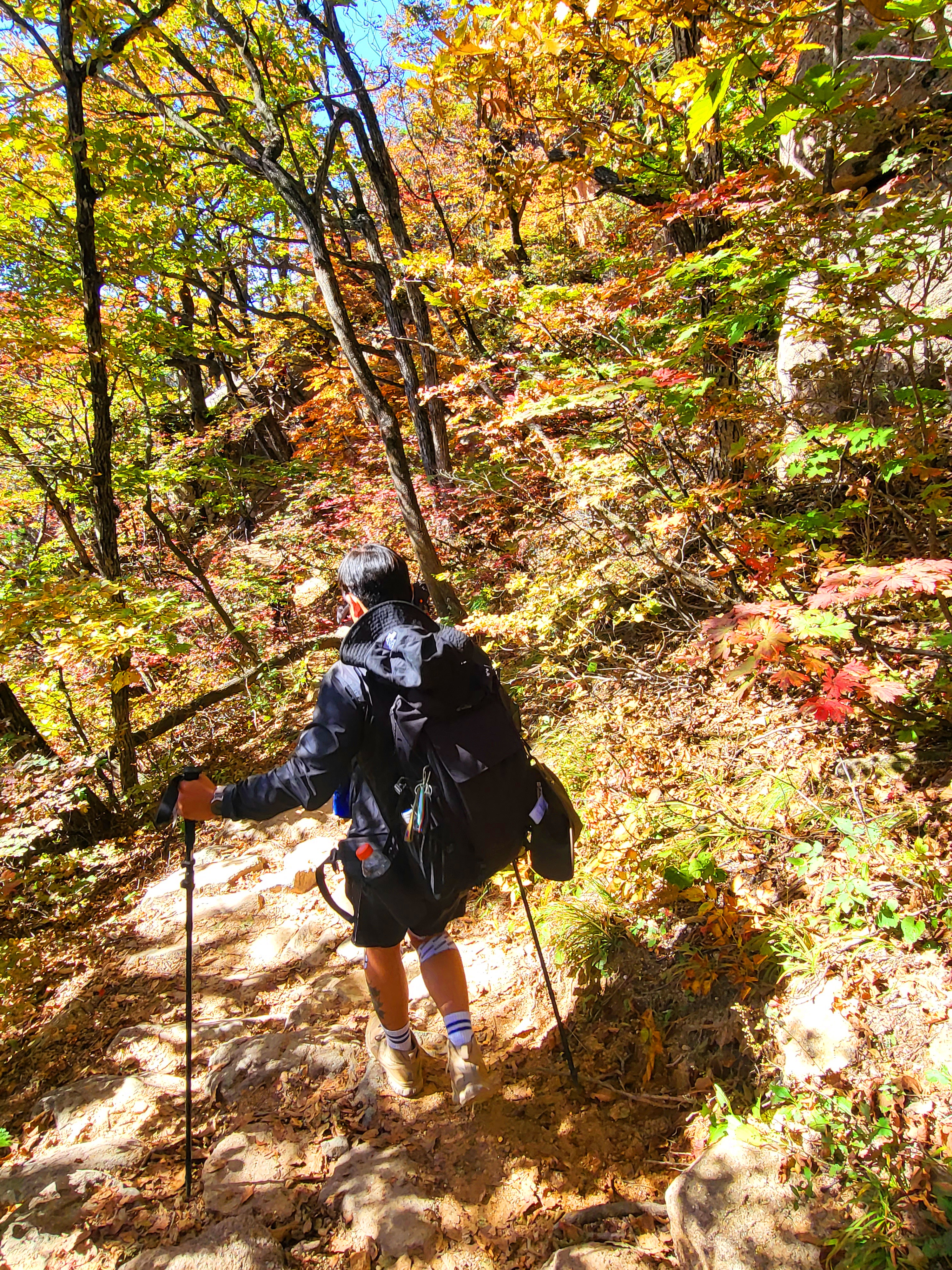 직접 바위를 타고 오르고 내려가는 scrambling(스크램블링) 구간이 상당히 많고, 체력과 집중력이 동시에 요구돼요.